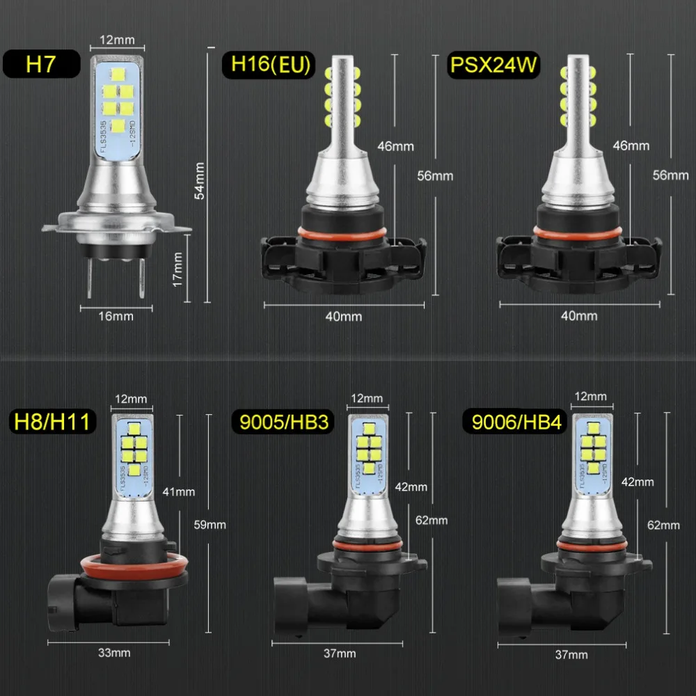 buy 2pcs Car Fog Lamp H1 H3 H7 H8 H11 H16 LED HB3 9005 HB4 9006 P13W PSX26W PSX24W LED Bulbs H27 800 88