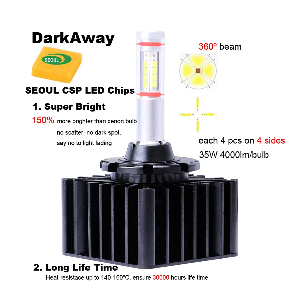 DarkAway D1S LED Bulb D3S D2R D2S D4S D5S D8S Car Headlights Lamp 35W 4000Lm Plug Play to Original HID Ballast Canbus Error Free,DarkAway D1S LED D2R D3S D4S D5S D8S Bulb Direct Connect to HID Ballast Replace 12V 35W Original Bulb Plug Play Canbus 6500K, DarkAway D1S LED D2R D3S D4S D5S D8S Bulb Direct Connect to HID Ballast Replace 12V 35W Original Bulb Plug Play Canbus 6500K
