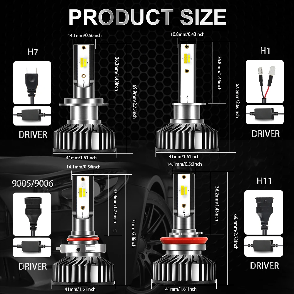 Best BraveWay H1 H11 H8 H9 H7 LED Headlight Bulbs H7 LED Canbus HB3 HB4 LED Lights for Car 12V 24V 3000K